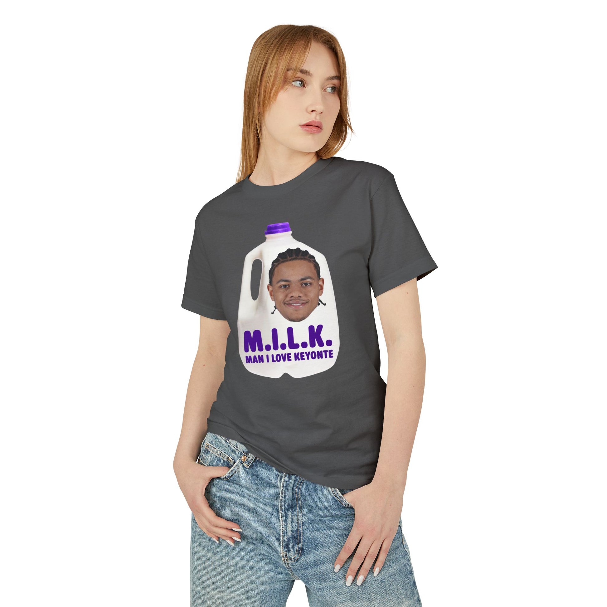 This tee is a bold, tongue-in-cheek nod to hoops culture, game nights, and the jokes that live online. Featuring a milk jug graphic and a phrase that speaks for itself, the design connects instantly with anyone who gets it.